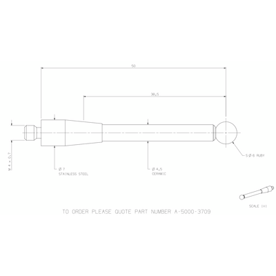 A-5000-3709 Щуп M4, PS3-1C шарик Ø6 рубин, стержень L50 керамика, ЭРД 38,5 мм RENISHAW 91.00-T53/6-KE-M4 M4-Stylus (R-6-CE-4.5-L50)