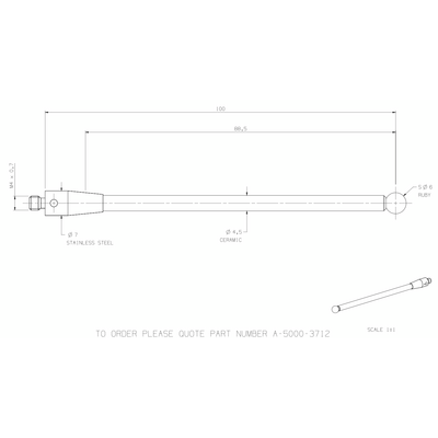 RENISHAW A-5000-3712 M4, шарик из синтетического рубина Ø6, керамический стержень, L 100 мм, ЭРД 88,5 мм