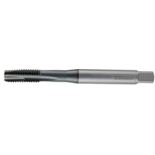 Такие метчики нередко называют gun-метчиками. Спиральная подточка формирует направление стружки прямо вперед, поэтому инструмент обеспечивает высокую производительность и пониженный крутящий момент при резании. Это особенно важно в сквозных отверстиях, где стружка может свободно выходить наружу.