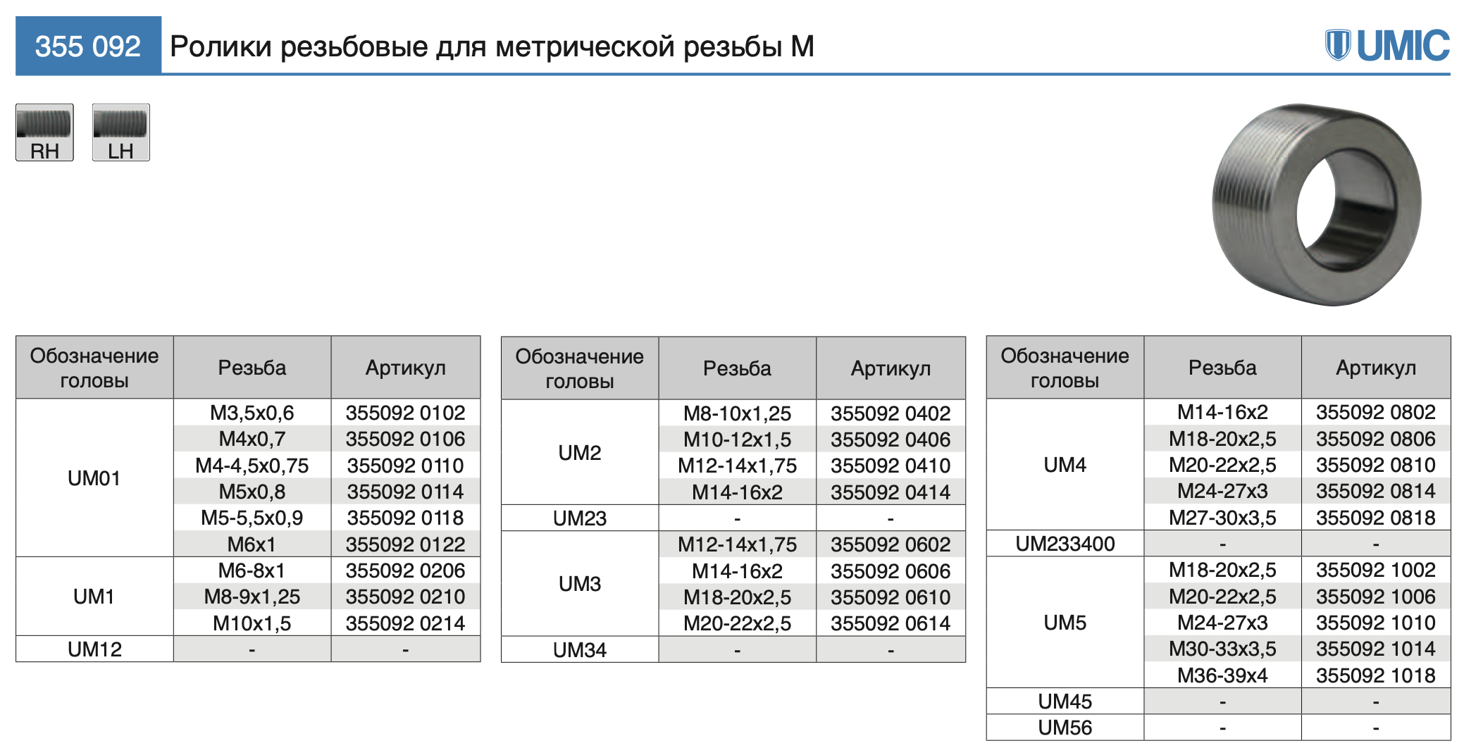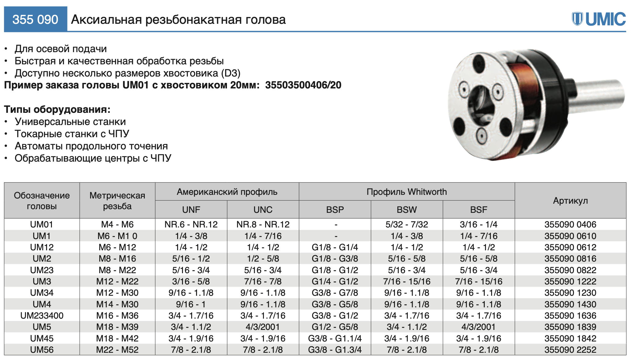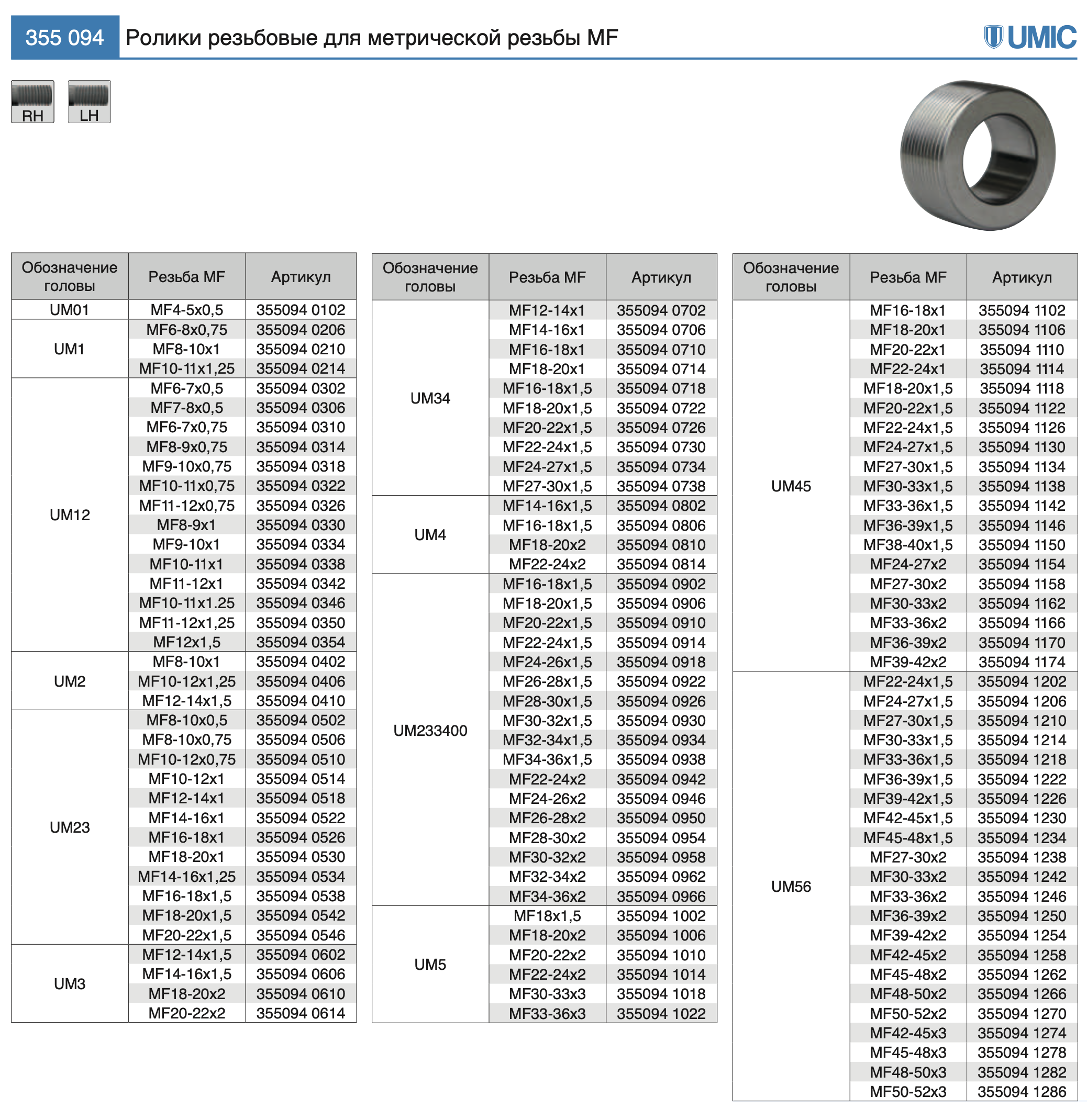 - По запросу возможно изготовление роликов для накатки резьб: UNF 5/16 - 1/2; UNC 1/2 - 5/8; BSP G1/8 - G3/8; BSW 5/16 - 5/8; BSF 5/16 - 5/8.