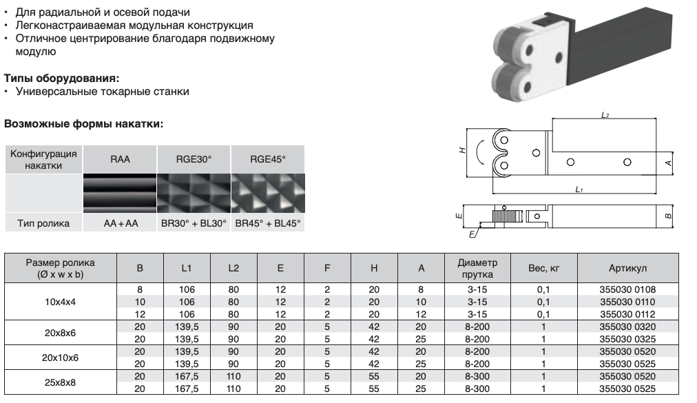3550300320 Державка для накатки двухроликовая нейтральная 20x20x139-2x20/8 UMIC Державка для накатки рифления двухроликовая нейтральная 20x20x139-2x20/8. Закрепление накатного ролика на оси производится винтом с внутренним шестигранником. Закрепление державки производится в радиальном направлении под прямым углом к заготовке.