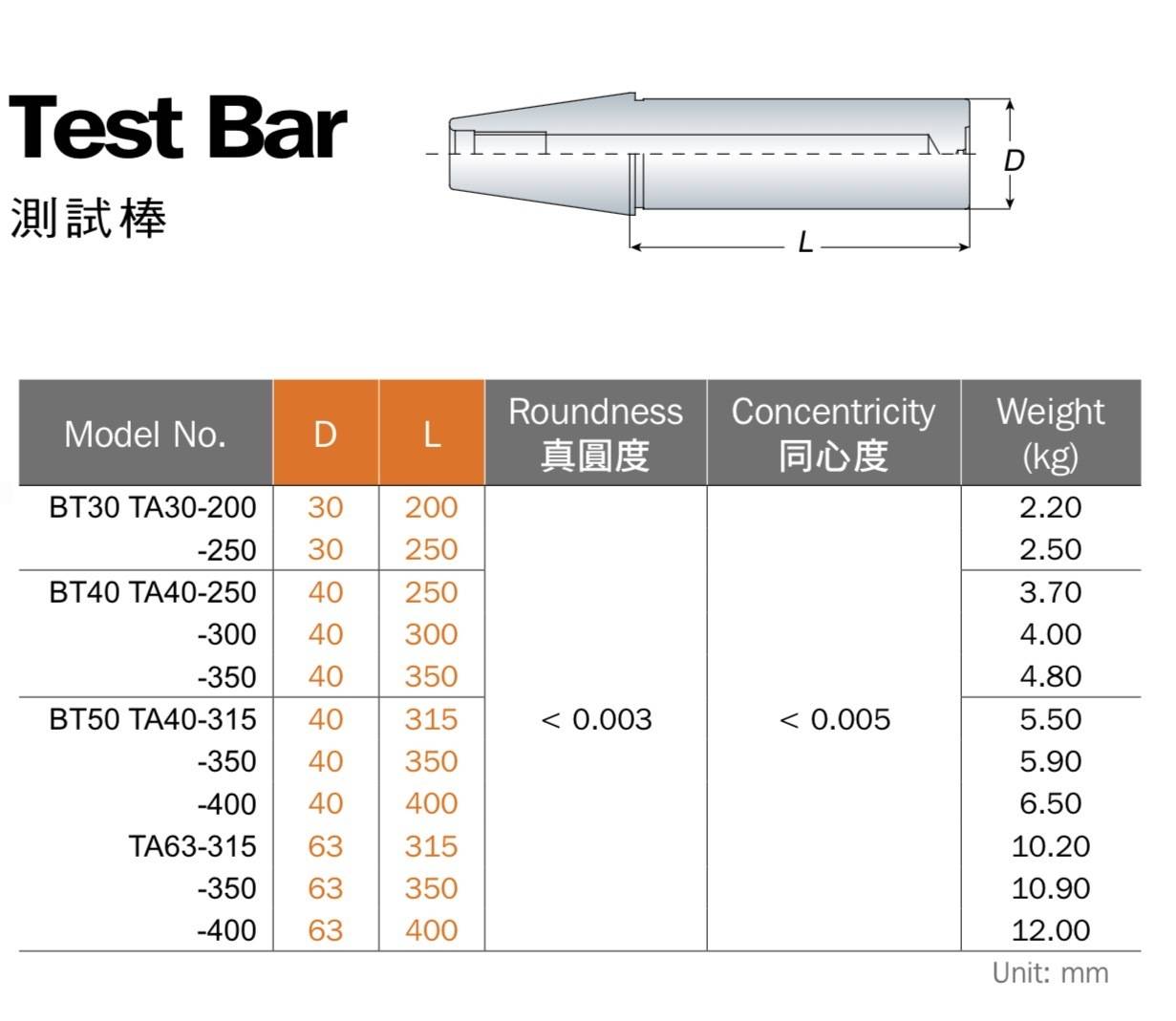 Тестовая оправка BT50-TA40-300 Эталонная Оправка
