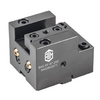 Блоки BMT65 тип F являются дополнительными блоками, обычно на ревеольверной головке устанавливают только один такой или не устанавливают совсем. Применяются для зекрепления резца с призматическим хвостовиком, по резец параллелен оси вращения шпинделя токарного станка. Поэтому к возможныи операциям относятся подрезка торца и обработка торцевых канавок.